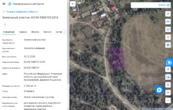 Земельный участок с кадастровым номером 62:04:1090101:2214 площадь 2500 по адресу Российская Федерация, Рязанская область, муниципальный округ Касимовский, деревня Лощинино