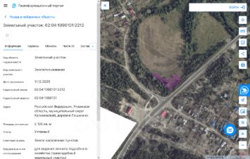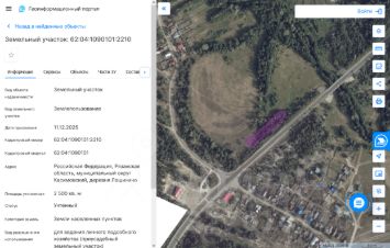 Земельный участок с кадастровым номером 62:04:1090101:2216 площадь 2500 по адресу Российская Федерация, Рязанская область, муниципальный округ Касимовский, деревня Лощинино