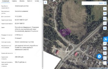 Земельный участок с кадастровым номером 62:04:1090101:2211 площадь 2500 кв. м по адресу Российская Федерация, Рязанская область, муниципальный округ Касимовский, деревня Лощинино